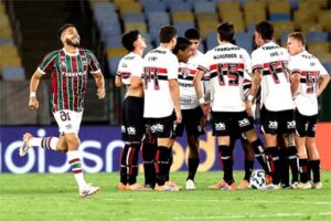 FUTEBOL – Às vésperas do Brasil do futebol parar para assistir a final da Libertadores entre Palmeiras e Flamengo, (neste sábado, 29, em Lima, às 18h), o Fluminense massacrou o São Paulo sem dó nem piedade na noite desta quinta-feira (27). O Tricolor das Laranjeiras recebeu o Tricolor Paulista, no Maracanã, e aplicou um sonoro 6 a 0, atropelando desde o primeiro minuto. O resultado acachapante foi o maior da história do confronto entre os clubes. Jogos de Hoje: Juventude x Bahia, Vasco x Internacional e Santos x Sport de Recife MAIS
