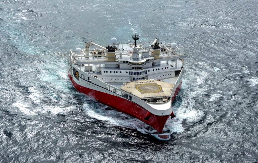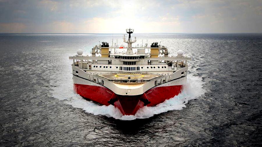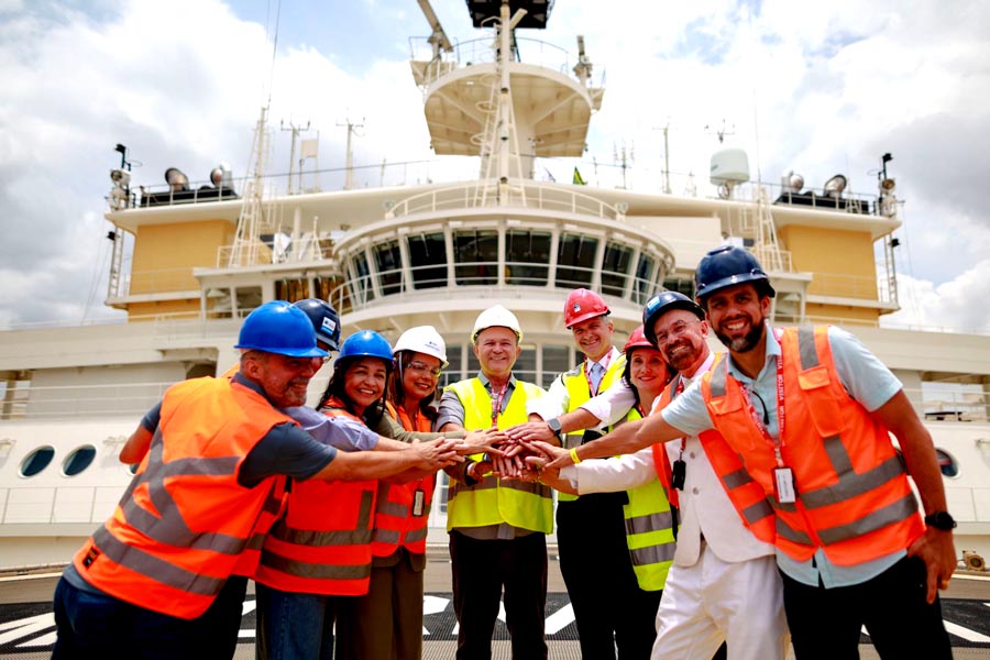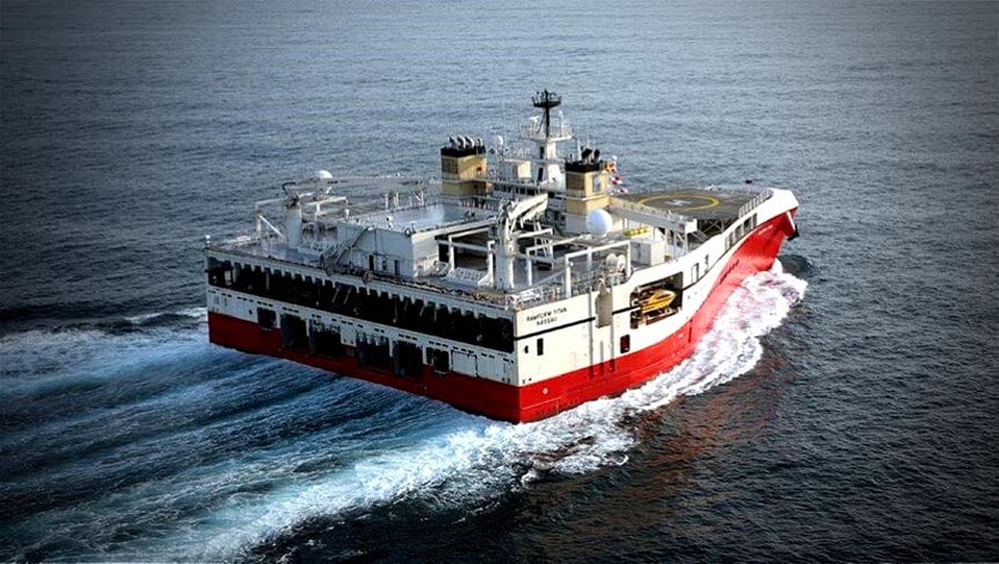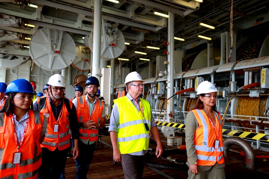O navio Ramform Titan já esteve em atividade no Brasil, realizando a pesquisa sísmica que resultou nos desenvolvimentos de campos do pré-sal. A pesquisa sísmica é o primeiro elo da cadeia de produção de óleo e gás, por meio da qual as empresas conseguem “enxergar” as camadas do subsolo. O levantamento marítimo utiliza ondas sonoras para criar imagens detalhadas das formações geológicas. Essa técnica ajuda a identificar as prováveis localizações de reservatórios de petróleo ou gás, funcionando como uma ultrassonografia do subsolo.