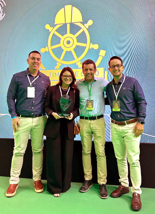 A empresa Granel Química, de São Luís, (porto do Itaqui) que teve como representante no evento Maycon Melo, conquistou o segundo lugar como o melhor na categoria Terminal Terceiro. O primeiro lugar ficou com o Terminal da Pandenor (porto de Suape) e, em terceiro, o Terminal da Vopak (porto de Santos). Na foto, um click para Leandro Medina, Danielle Almeida, Marlos do Nascimento e Maycon Melo, sendo este último repressentante da empresa Granel Química, que opera no setor de transportes e tancagem de combustíveis no porto do Itaqui, principal porto público do Estado do Maranhão.