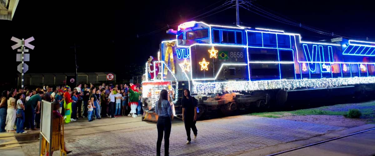 O espírito natalino ganhou um brilho especial no Maranhão com o Papai Noel no trem natalino da VLI, uma iniciativa gratuita voltada para toda a família. O evento aconteceu em Imperatriz nos dias 9 e 12, às 19h; em Porto Franco, no dia 10; e em Estreito, no dia 11, quando uma locomotiva decorada e iluminada percorreu o tramo norte da Ferrovia Norte-Sul (FNS), administrado pela VLI — companhia de soluções logísticas que opera ferrovias, portos e terminais. O trem levou alegria para as famílias das cidades e encantou o público.