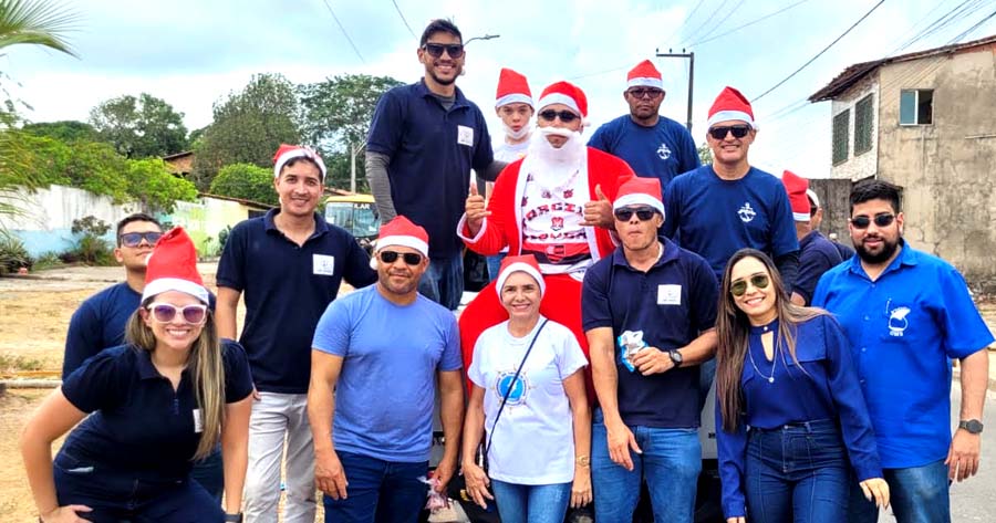Responsável pela alegria, onde mistura a fantasia com a magia e realidade do Natal, a empresa GMS Serviços Marítimos do Brasil, com apoio da Soamar e da Capitania dos Portos do Maranhão, realizou, na última sexta-feira, 19/12/2025, a sua ação tradicional ação social anual de Natal. Foram distribuídas 330 cestas básicas, brinquedos e lanches para crianças e adultos na comunidade do Coqueiro, e, também, do outro lado do estaleiro, conhecida como ilha de Tua-Mirim, formada por três comunidades: Portinho, Taua-Mirim e Jacamim.  Mais uma vez, a ação esteve focada nas famílias de Jacamim.