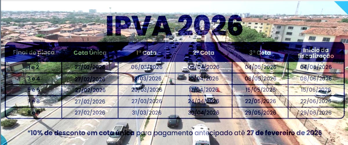 O Governo do Maranhão, por meio da Secretaria de Estado da Fazenda, já divulgou o calendário de pagamento do Imposto sobre Propriedade de Veículos Automotores (IPVA) do exercício de 2026, conforme a Portaria 405/2025. O pagamento do imposto poderá ser feito em cota única com 10% de desconto no valor do IPVA, se pago até o dia 27 de fevereiro, ou parcelado em até três vezes, sem desconto e com o vencimento da primeira cota no mês de março.