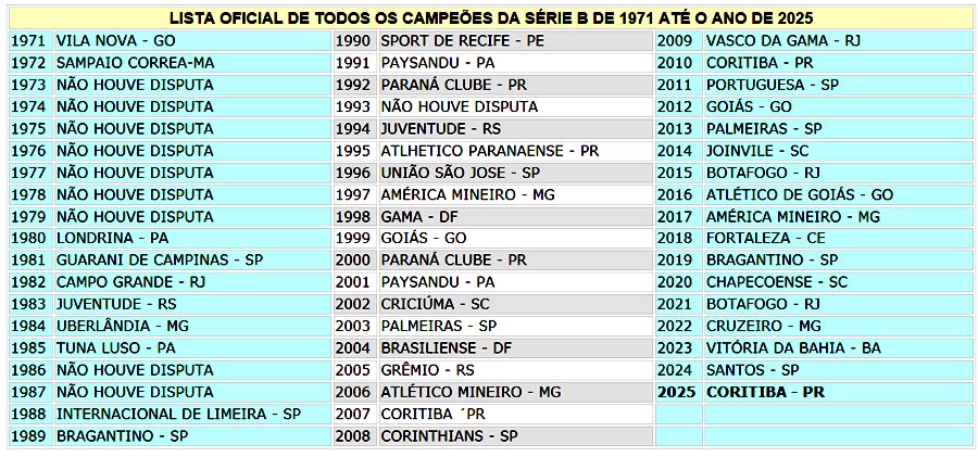 O Coritiba é campeão da segundona, ano 2025, e retorna a Série A do Brasileirão. Também subiram Athletico Paranaense, Chapecoense e Clube do Remo.