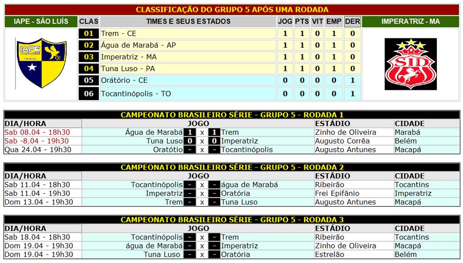 O Sampaio Corrêa empatou de 0x0 com o Iguatu do Ceará, enquanto Imperatriz empatou em casa com a Tuna Luso de Belém, e o Iape, também jogando em casa, deixou escapa uma vitória contra o time do Maracanã. Veja nos gráficos, resultados e os próximos jogos dos times maranhenses até a terceira rodada.